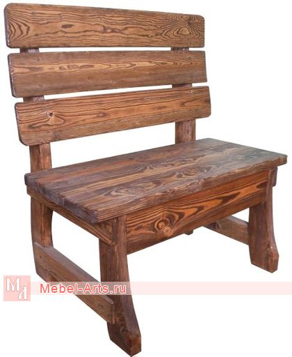 Скамья для бара из искусственно состаренной сосны. Деревянная скамья с широким удобным сиденьем и высокой спинкой. Поверхность скамьи имеет ярко выраженный рисунок древесины.