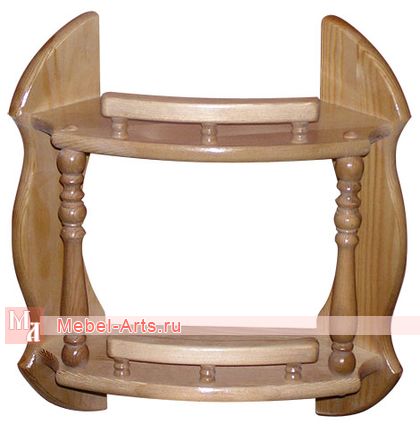 Полка под цветы Герда-4 выполнена с точеными элементами-стойками, имеет две полочки, каждая из которых рассчитана на