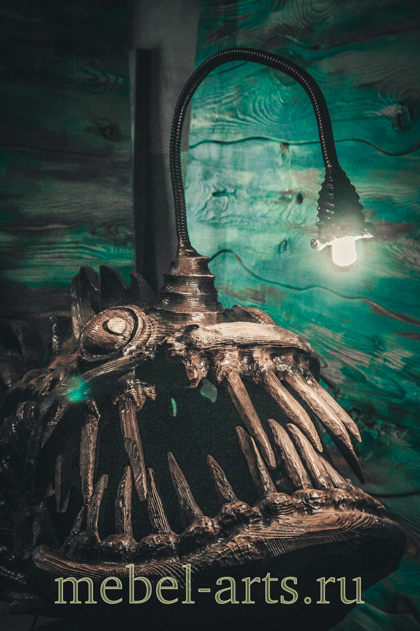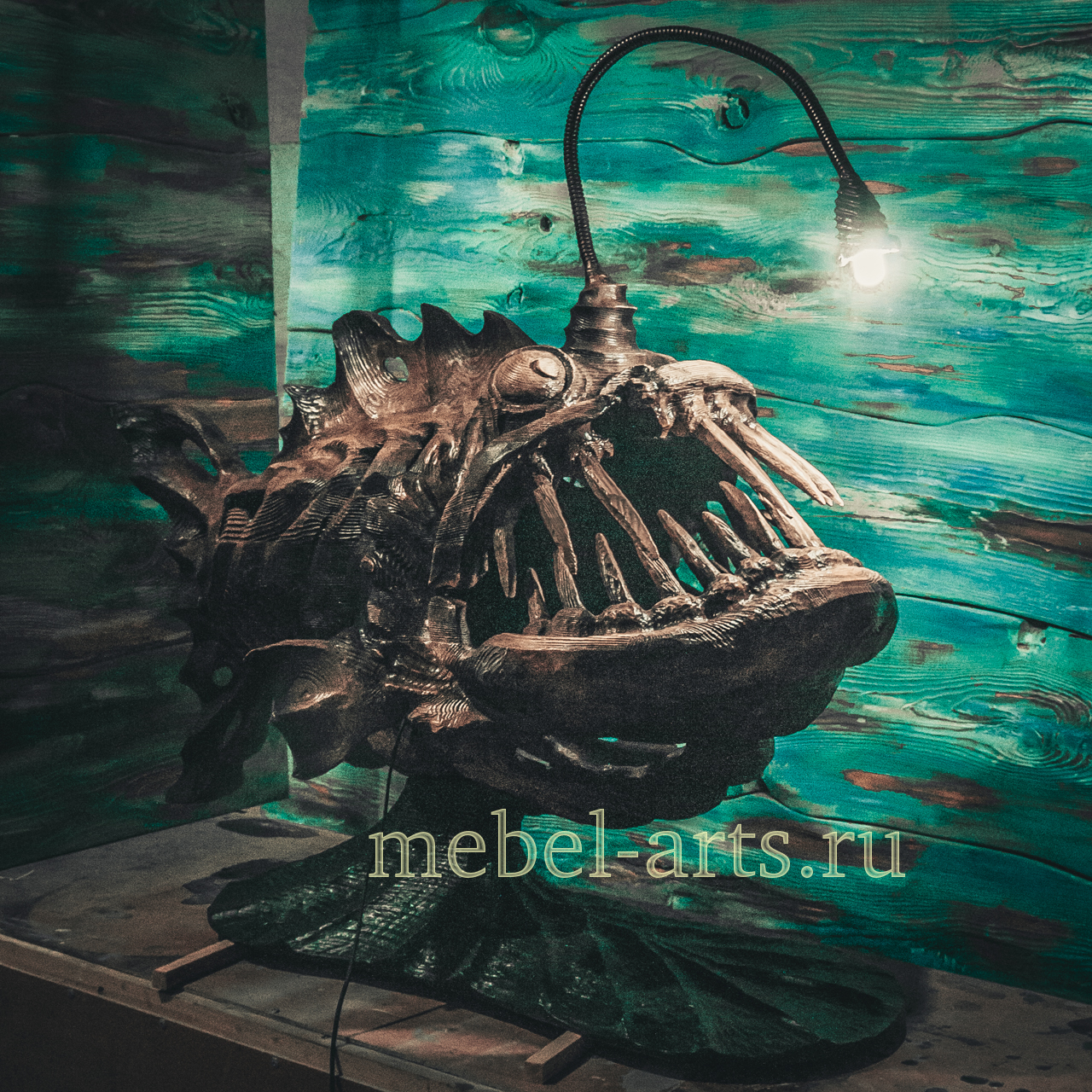 Резная рыбина Морской черт на подставке с подсветкой. Ручная работа