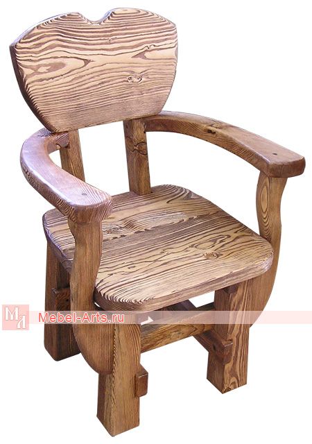 Вы можете заказать изготовление деревянного кресла по этому эскизу. Оно будет сделано из натуральной сосны, фактура которой является одним из главных украшений модели. Все детали будут тщательно отшлифованы и идеально подогнаны, так как кресло не будет скрипеть. Мы можем изготовить кресло из дерева на заказ — одно или пару. К ним в комплект можно сделать подходящий по стилю столик.