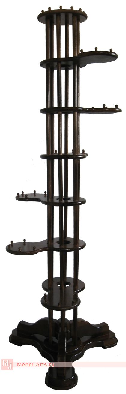 Подставка для цветов деревянная, рассчитана на семь горшков. Полочки под цветы поднимаются вдоль шести стоек по спирали, поэтому будет великолепно виден каждый цветок. Подставка для цветов Вьюн имеет массивное устойчивое основание. Цвет подставки для цветов может быть любой по желанию заказчика.