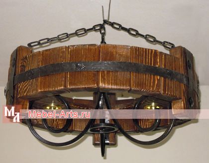 Люстра из массива сосны, кованые элементы.