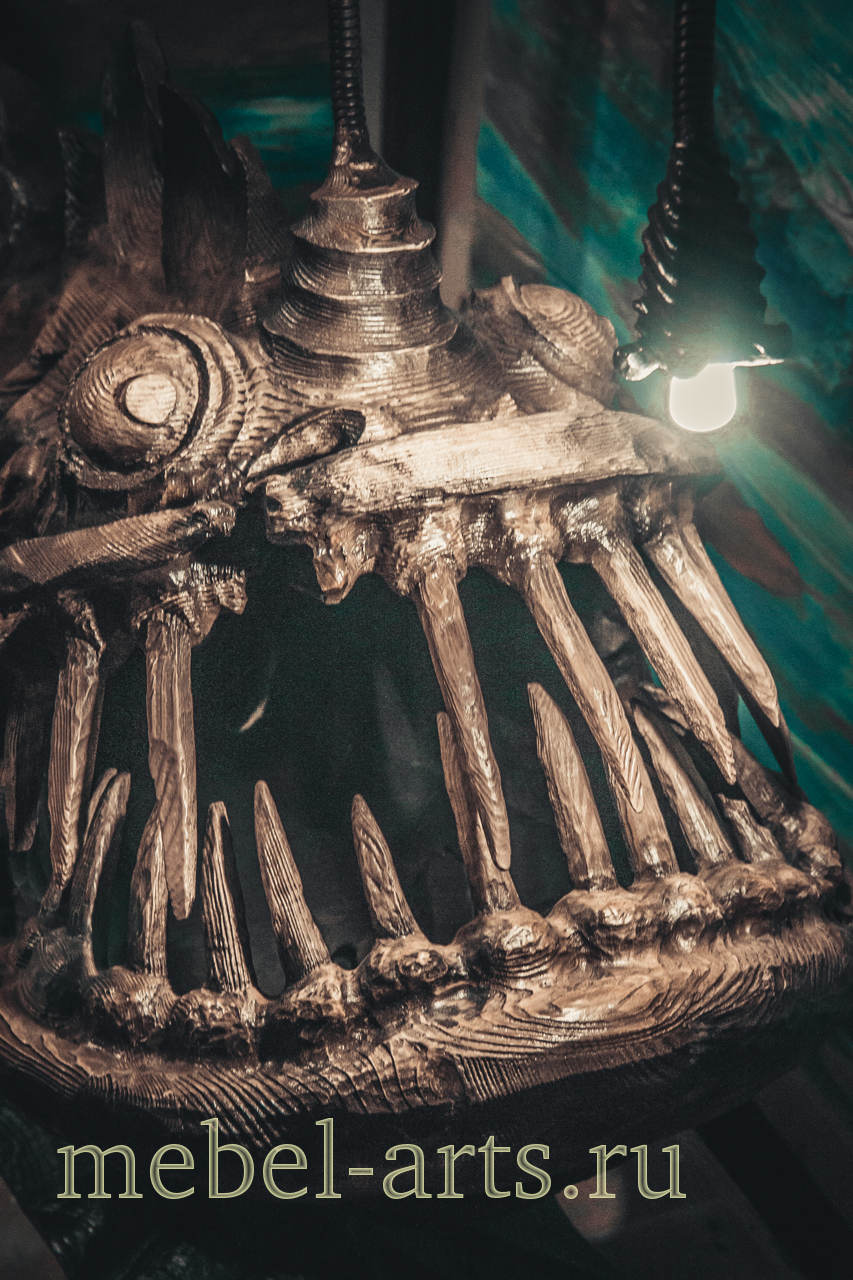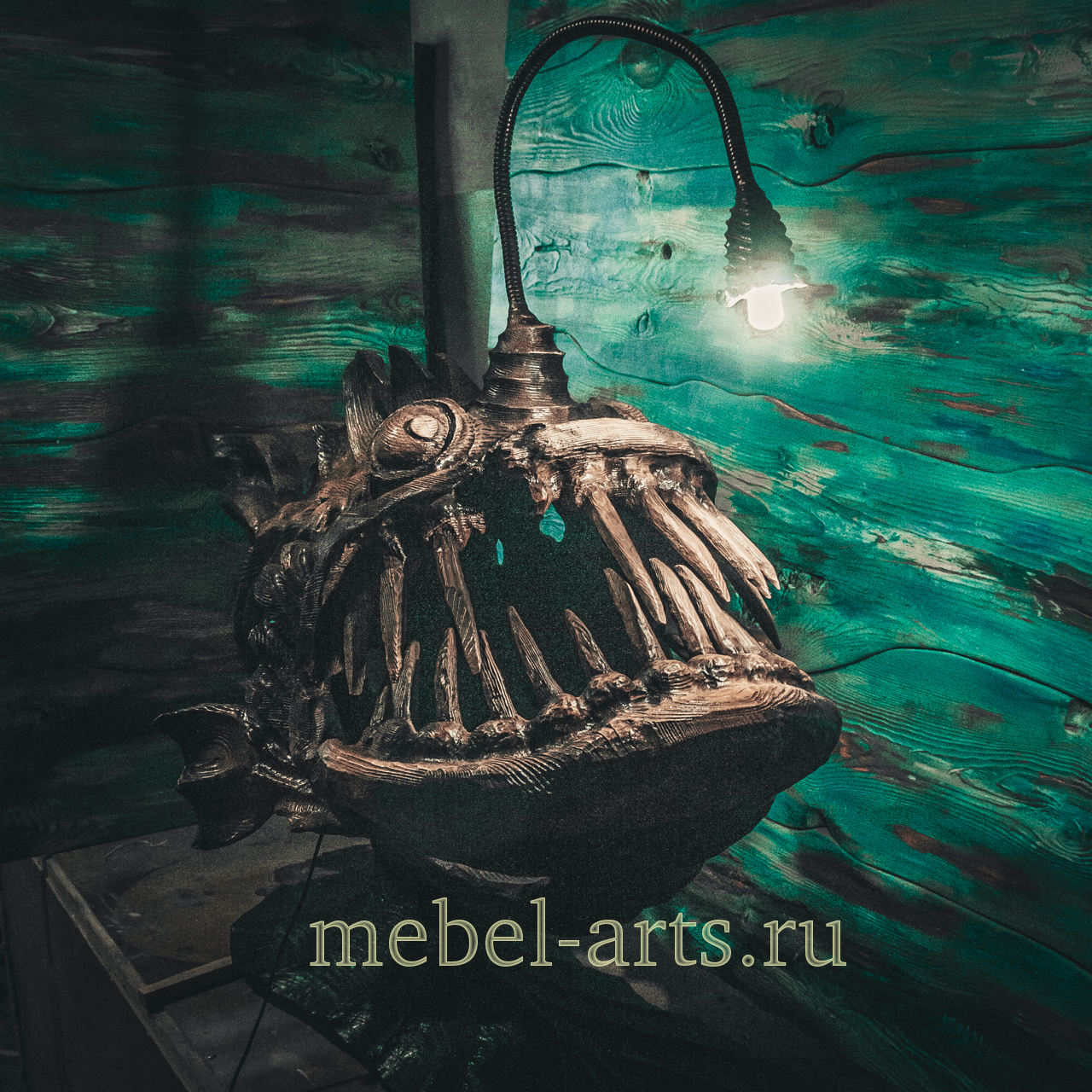 Резная рыбина Морской черт на подставке с подсветкой. Ручная работа